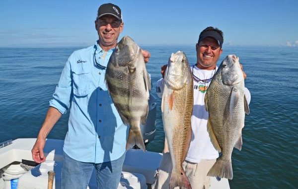 They hadn’t caught a sheepshead, and they had their limits of bull reds.