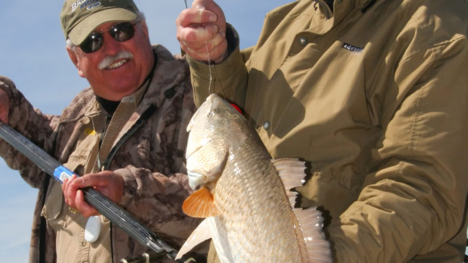 Although he sometimes hooks up with trout on a jig tipped with market bait, Langridge concluded by saying that he most often uses it when he’s after redfish. Trout tend to be sight feeders, but redfish are sight and smell feeders.