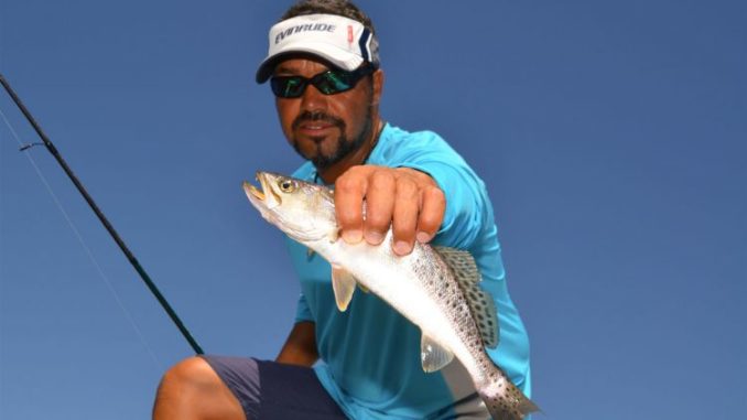 He began picking up small keeper speckled trout, not every cast, but often enough to make things interesting. Transition time isn’t trophy trout time.
