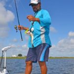 He is dedicated to 2500 Shimano Stradic reels (He’s been using them since his early teens) on 7-foot 2-inch medium weight Shimano Crucial rods with extra fast tips. His reels are spooled with PowerPro Maxcuatro braided line.