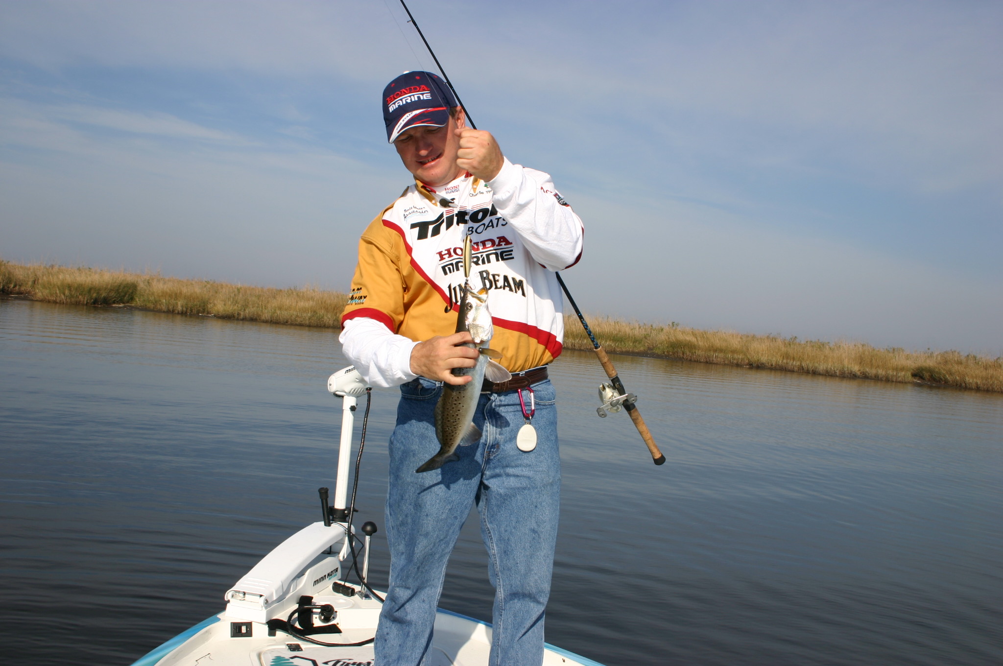 “With this color water, the fish need every bit of help they can get to get a line on this bait,” he said. “That’s why I like a 3/8-ounce head. It pushes a lot of water around when it’s stained like this and makes those little mud clouds when it’s clear and the fish want a little hop.”