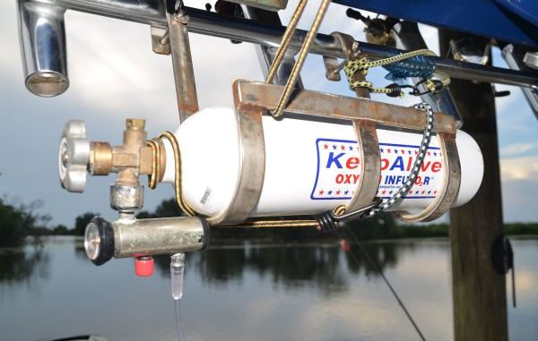 Toledano only takes new water into the bait tank from outside the boat occasionally to flush the system, preferring to use his KeepAlive recirculating pump to move water from the tank and add it back to add millions of tiny bubbles produced through the “venturi effect.”