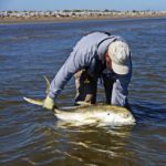 Although jacks will fight to near full exhaustion, they are hardy and will readily revive after a long battle. Move the fish back and forth in the water in an upright position until you feel it regaining strength.