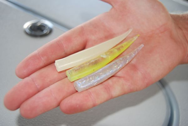 The rig we fished was in about 25 feet of water, and the bite was on as soon as the plastics we used — mostly MirrOlure Lil Johns in glow, opening night and chartreuse ice and opening night H&H Baby Bull Minnows— fell into the strike zone.