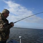 “We’re picking off some fish today in the intermediate bays, but they are clearly moving steadily toward the bigger bays on the outside. We’re only fishing in here today because the winds are too brutal to go farther out.