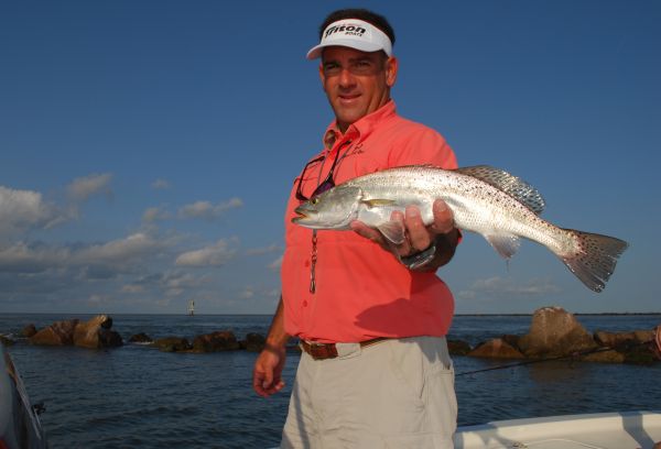 July fishing, both men agree, is dominated by the use of live bait. Early in the month, the trout can be scattered, but with the full heat of summer, the fish will move toward the ship channel — especially in the southern part of the lake.