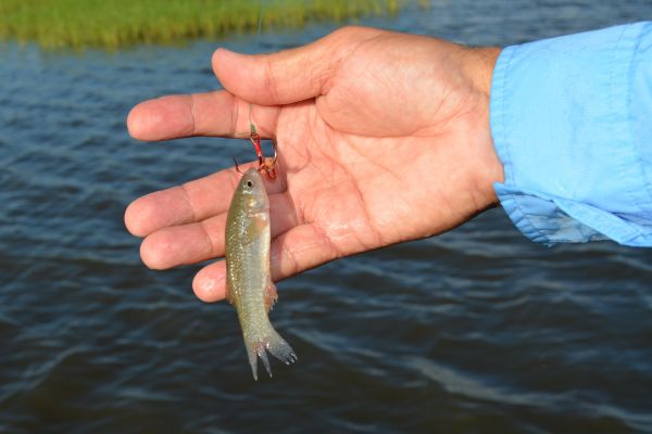 Most of the time he tossed live cocahoe under a cork, retrieving the rig along the shore with a slow popping action. The marsh was different here — less eroded and broken — and because the water isn’t as salty, the dominant plant was wire grass instead of oyster grass.