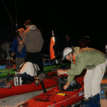 The tournament is limited to the first 100 who sign up. It’s quite a sight to see all those kayaks with their white lights bobbing in the darkness while waiting on the start. When the horn blows, the light show becomes fluid as the parade of pedalers and paddlers eagerly make their way towards their favorite spots.