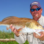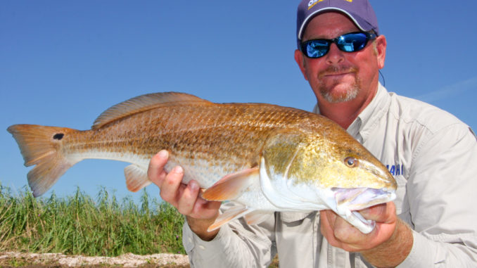 “A lot of redfish are up in the ponds right now,” Poche explained while unhooking the first in a long line of redfish. “But I wanted to come out to some of these lakes and bays to see if we could find some cruising the banks. Looks like they’re out here, too.”