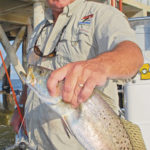 As the bite reached its peak, every cast triggered an almost instant strike. Many of the trout seemed to throw the hook right at the boat. At one point, Bonano jokingly scolded Bourgeois after he lost three nice trout in a row at the boat.