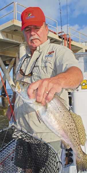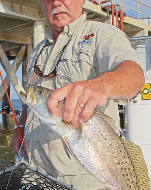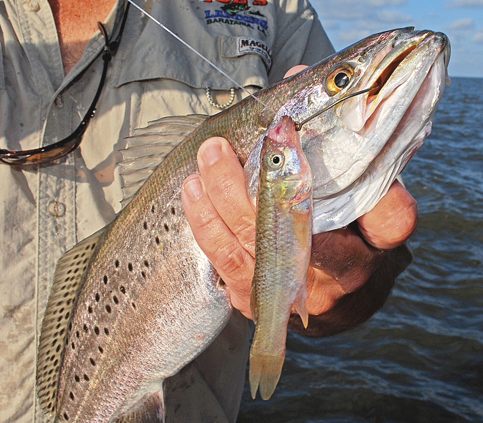 Live bait delivers Barataria Bay speckled trout strikes