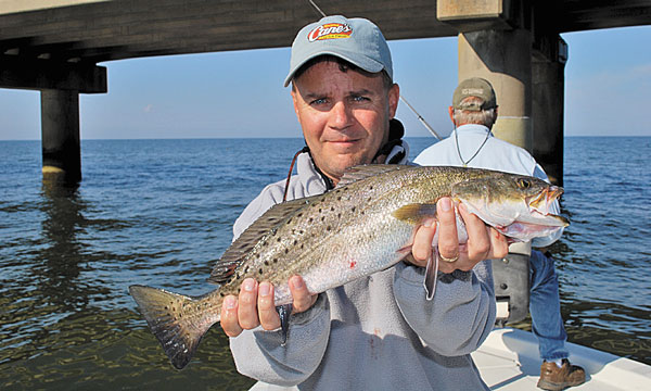 “The most important thing about fishing the Causeway is to be sure to let the bait hit the bottom before beginning the retrieve. It is 13 to 14 feet deep along the bridge. Always start by hitting the northwest corner of each piling first. That’s the best corner.”
