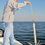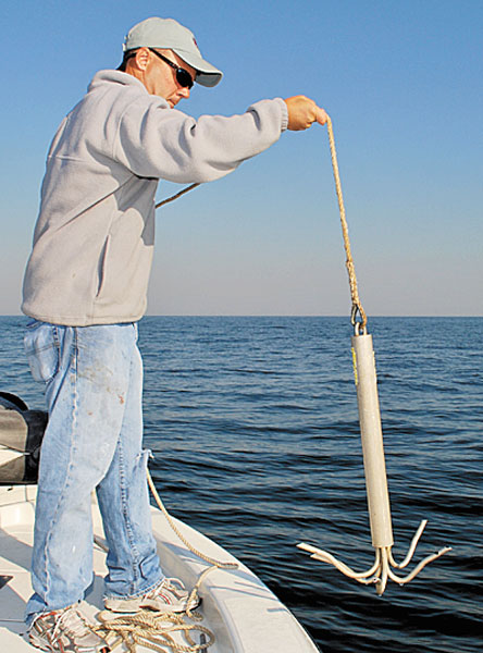 While Trahant lowered and set the Mighty Mite Reef Anchor, Weiss explained that concrete reef balls eat Danforth anchors and never regurgitate them.