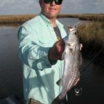 “I usually work my baits near the grassy islands and broken marsh, fishing the same way we’re fishing today, but I will bring some live shrimp along as soon as its available,” Fradella explained. “I also like to drift the bigger bays, closer to the lee side if its windy, and when I bump into action I’ll stick the pole down and try to add a few more to the count.”