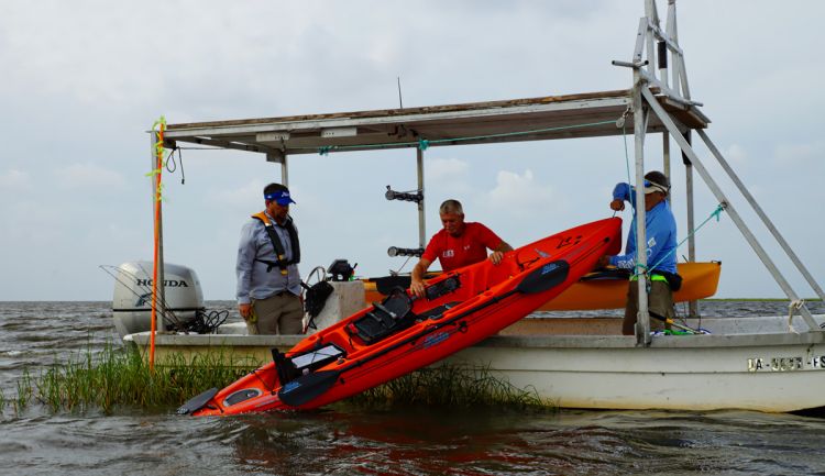 On a recent trip to check out the operation, three anglers loaded their Hobie kayaks onto Mullen’s skiff. On the ride out, he gave details about the area and gladly answered any questions.