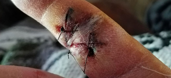 “By that afternoon, my finger got so stiff I didn’t know what was going on, and it started swelling. I soaked it in Epsom salt, which is what I normally do for cuts and scrapes and pokes. I did that Monday evening and Tuesday morning, and realized something wasn’t right.”