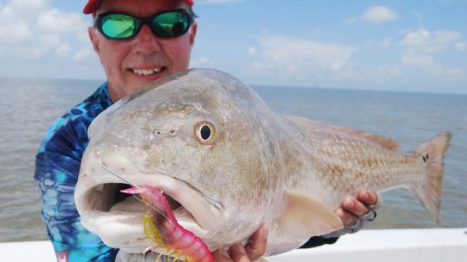 Getting hooked up is a lot easier than actually reeling in the beasts. Bulls were feasting on artificial plastics all day long, including Z-Man’s Swimmin’ TroutTrick and LiveTarget’s Rigged Shrimp suspended about 2-feet under a popping cork.