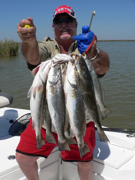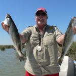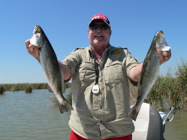 Now the weather begins to cooperate; winds lessen and blow good seawater in, tides straighten out, the bays begin to teem with bait and the speckled trout start feeding like piranhas smelling blood.