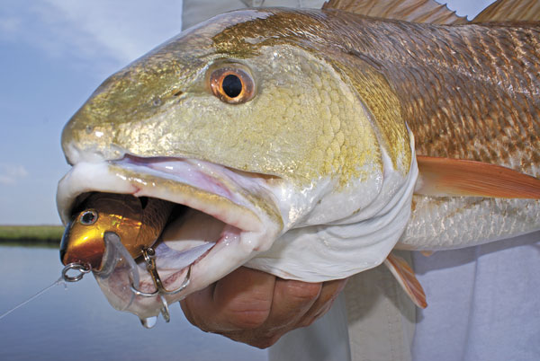 Though primarily designed for bottom feeding, redfish will violently attack topwater baits. However, they will often miss the bait several times before getting hooked. To increase your strike-to-hookup ratio, try downsizing to a smaller plug. Shorter topwater baits like a Spook Jr. or Top Pup have all the action of their larger cousins and are easier for reds to get in their mouths. Shallow-running crankbaits and wake-baits will also do a number on PAC area redfish.