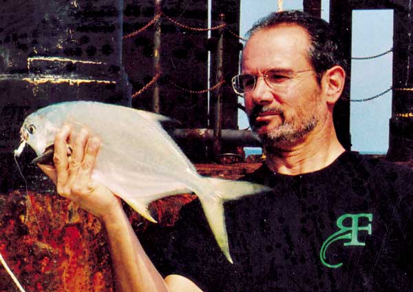 According to tomes by marine biologists, pompano inhabit deeper water (the rigs) during winter and spring, then return to the beaches for summer. But we also catch pompano fairly regularly during mid-summer — indeed, year round — at the above-mentioned shallow rigs. And while diving in summer, we often see schools. Winter pompano fishing is always best, however.