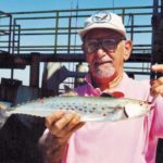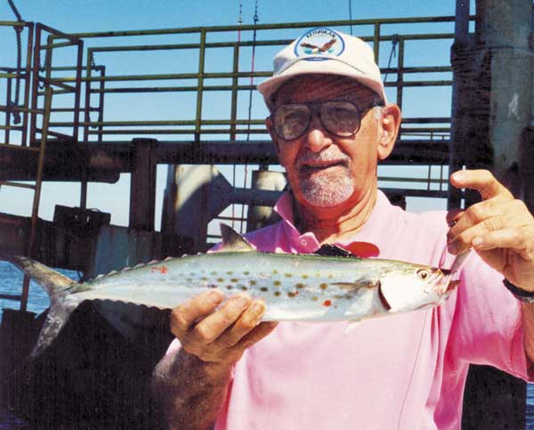 “They’re here!” I howled as my rod dipped, and I started cranking. This sucker was battling it out, too. But it was a sheepshead. No problem. Still a delectable fish. On my next cast, my rod was almost jerked from my grasp, so I knew it was a Spanish. Pompano and sheepshead (and triggerfish and spadefish, also prized by us) all nibble. Spanish (and bluefish) whack it and zoom off, often with your whole rig.