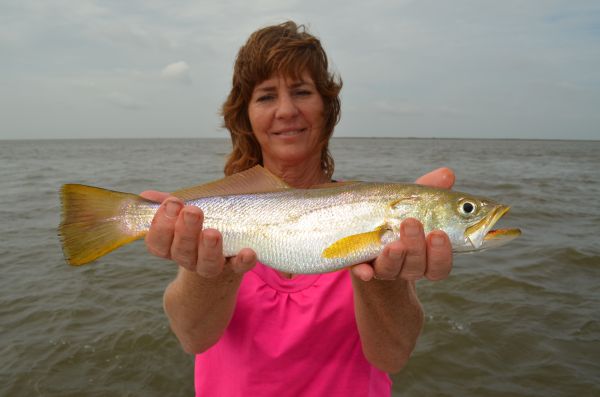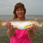 Fishing nearly straight down in the 25 foot deep water, the crew caught a few more speckled trout before Anita Wilkinson decided to call it a day.