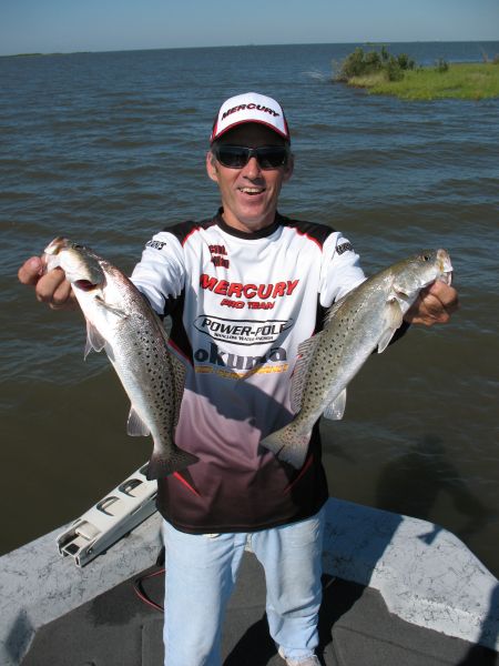 “That’s what we’re here for, boys,” Cheramie said, holding the big trout up for some photos.