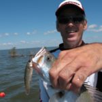 After we fished a while, it became obvious that Cheramie’s mullet colored topwater bait was outperforming my bone model, so I switched colors.