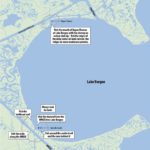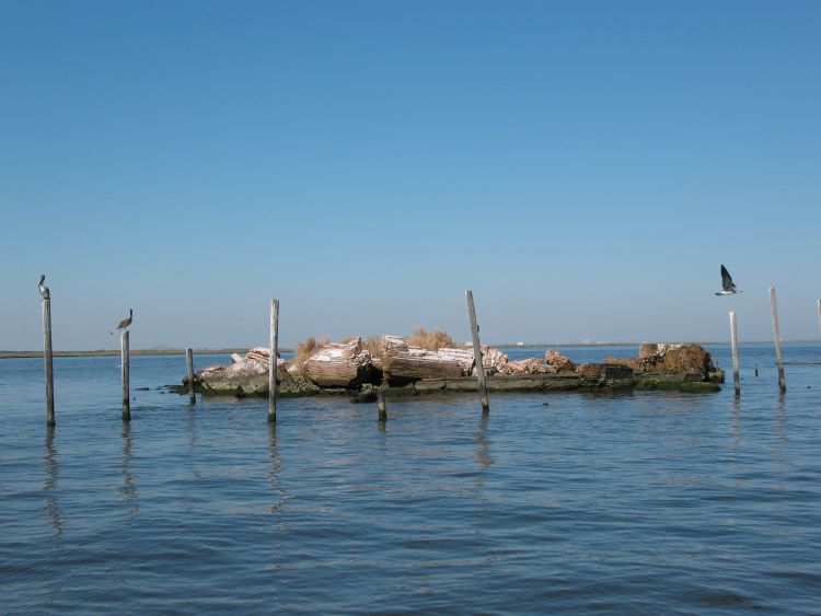 Others were positioned on both sides of the deeper channel stretching from the MRGO past the former tower into Lake Borgne, and quite a few were spread out seemingly haphazardly a distance behind the Castle.