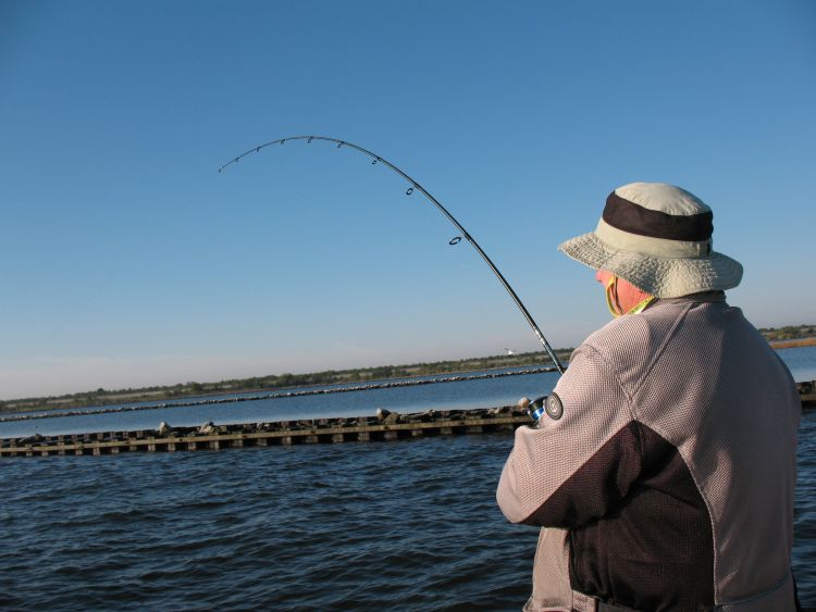 Gallo ignored the rock pile itself and idled to a spot along the bulkhead. Four or five boats were strung out along the length of the wall and, even from that distance, I could see bent rods in the hands of those nearest the MRGO — and from the arch in their poles they had to be nice-sized fish.