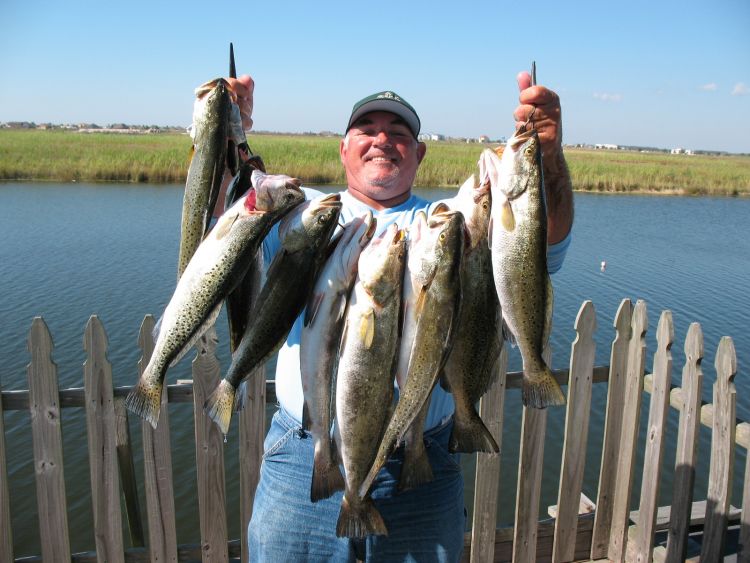 “It’s been on right here the past week or so,” he said. “We’ve been fishing live shrimp on a drop-shot rig, and the trout have been smacking them hard like you expect them to hit during the summer.”