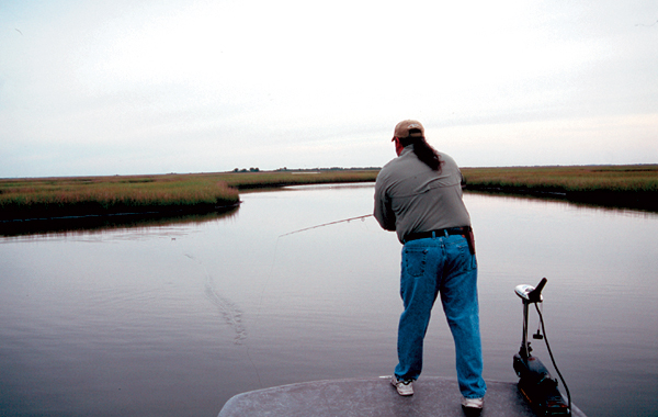 While he fishes with spinning gear if the wind is too strong or the water too cloudy for sight-fishing, he has an undeniable infatuation with waving a long wand across the tops of the needle rushes in his quest for trophy reds.
