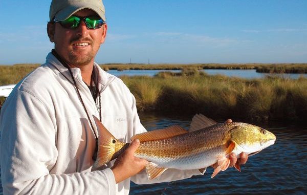 The results were successful, as a little later Trahan was holding a beautiful, golden Sabine Lake marsh red.