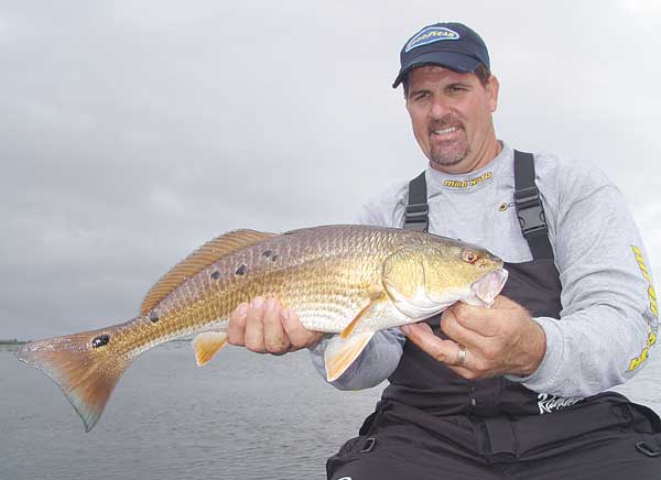 • Winter: Reds retreat to the deep sanctuaries of the inner marsh, so work ponds draining into bayous and dead-end canals, where the fish find stable temperatures. Work jigs slowly during cold spells, and switch to gold spoons and spinnerbaits on nearby flats during warm spells. When winter fish are sluggish, scented baits can stimulate a bite.