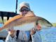 That first redfish of the day eventually joined the two anglers in the boat. It was released after a brief photo session.