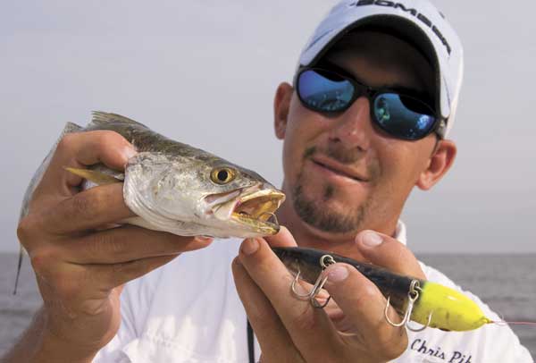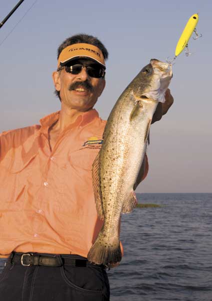 “I stay with the topwater later in the day if I’m strictly looking for the larger 16-inch trout,” he said. “On the other hand, if I want numbers, I go with some kind of plastic tightlined on a 1/4-ounce jighead or hanging under a cork. I also always keep an eye over my shoulder toward the bay looking for birds.”