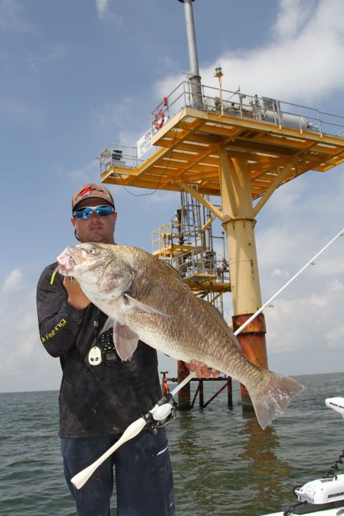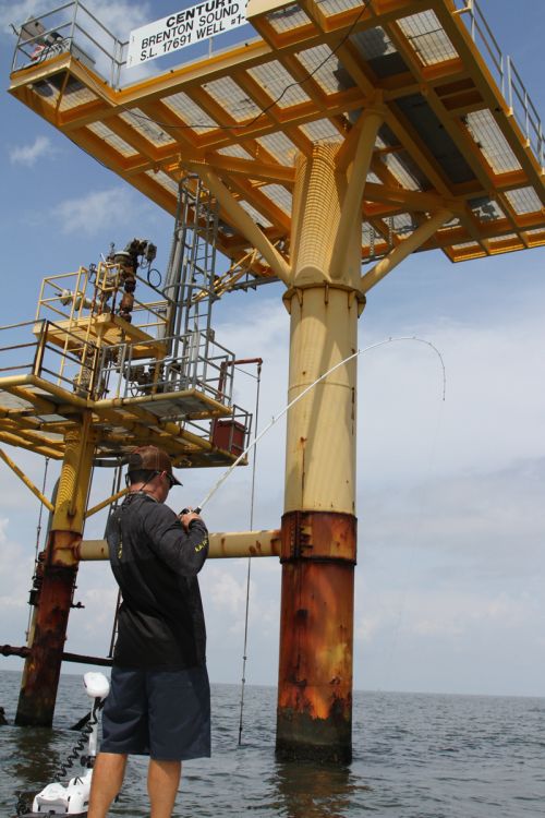Indeed, when inshore waters feel like a bathtub, turn your attention to the rigs, and the various pumping stations and support structures scattered along the Delta’s perimeter.