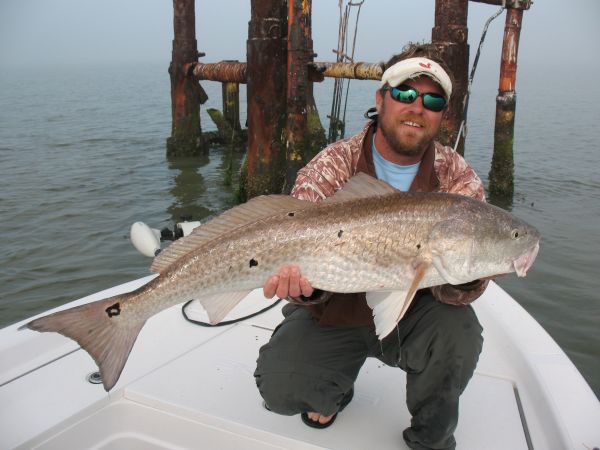 “But I am noticing some green water in the prop wash, so while we’re out here I’m going to stop at a couple of small wellheads to see if those bull reds we were fishing last month out here are still hanging around.”