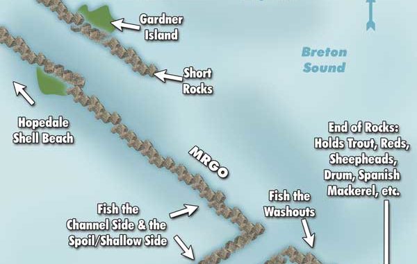 “Let’s go fish the rocks at the end of the MRGO,” he said.