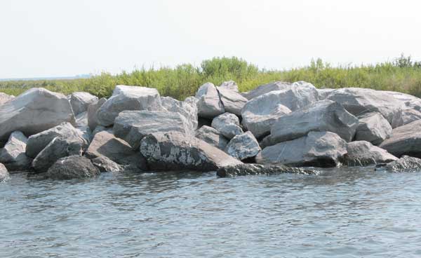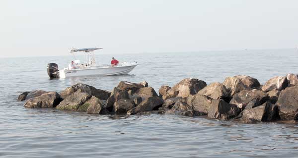 Over time, they have a tendency to settle down and sink beneath the surface. The reason for that is obvious. The rocks weigh tons, and the bottom is soft. The submerged rocks were still productive, but in the past the Corps of Engineers would invariably barge in thousands of tons of more rocks to stack on top of the others and build the jetties back up again. And every time they did that, the fishing action slowed dramatically for a season or two or three.