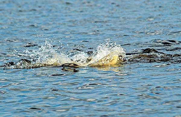 “There they are,” Anthony Kyzar said, pointing to roiling water 100 yards ahead.