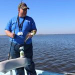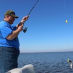 “All of the bays I’ve mentioned have oyster beds,” he said. “And all of those beds are marked by white sticks. The trout are usually going to congregate around the oyster beds, so I’ll position the boat upwind of a set of sticks and drift.”