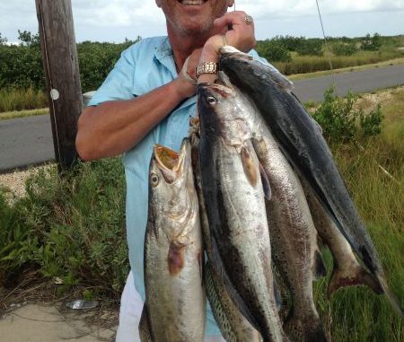 Vidrine caught his limit yesterday afternoon fishing with live pogies that he caught himself about 2 feet under a popping cork. The pogies weren’t particularly big — about 2 inches — but that didn’t seem to affect the bite.