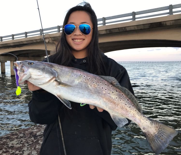 Instead, this is a tightline game, with heavy jigs (⅜ to ½ ounce) being the best bets because it allows anglers to overcome current and reach the bottom, where big trout live.