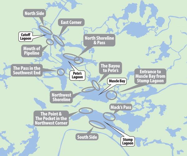 “One, fish the mouth of Muscle Bay when you first enter it coming up from Stump Lagoon, (fishing) under a cork,” he said. “You can anchor or drift, and stick when you catch a fish or two.