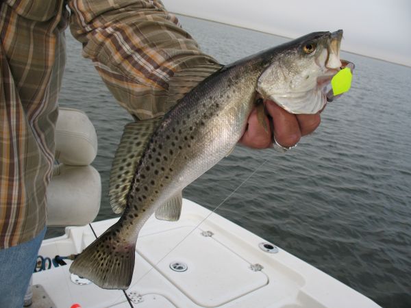 “Then you can try the pass. It’s not deep, maybe 4 feet or so, but it holds trout. Anchor or drift and toss your plastics under a cork or tight-lined.”