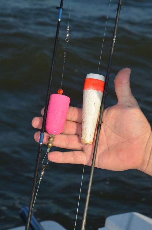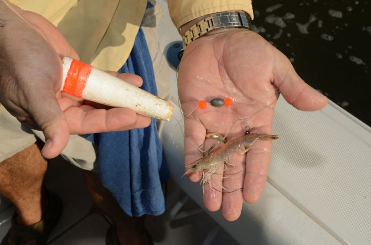 Except for Gallo, who started with soft plastics, everyone used live shrimp under scoop-faced popping corks. Davis isn’t too much of a snob to use old-style foam corks with a pin to hold them in place on the line.