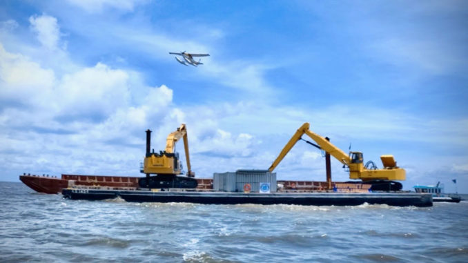 After the dedication ceremony, many of those in attendance took a boat ride to watch reef construction begin. At one point, Theophile IV directed the passengers on all of the other boats to look toward the eastern sky. When they did, they saw a Bourgeois Charters seaplane approaching the reef site. Participants were treated to a ceremonial fly-over, a moment that caught many by surprise, but was a perfect and emotional tribute.