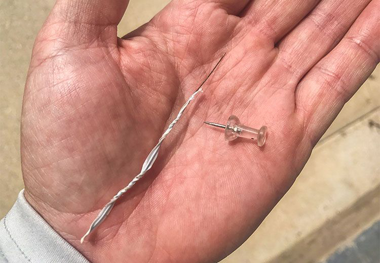 Fingernails won’t get the job done here. You have to use one (or both) of these tools: A thumb tack and/or a stripped twist tie (like from a loaf of bread.)