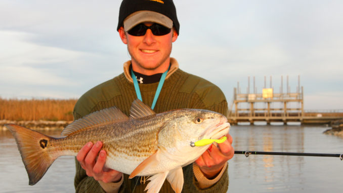 Redfish swim around and look for something to eat. Therefore, on an incoming tide, redfish move to the marsh side of the weir. On the other hand, flounder hide behind points and wait on something to swim by. That’s why they’re more consistent on the lake side during an incoming tide.